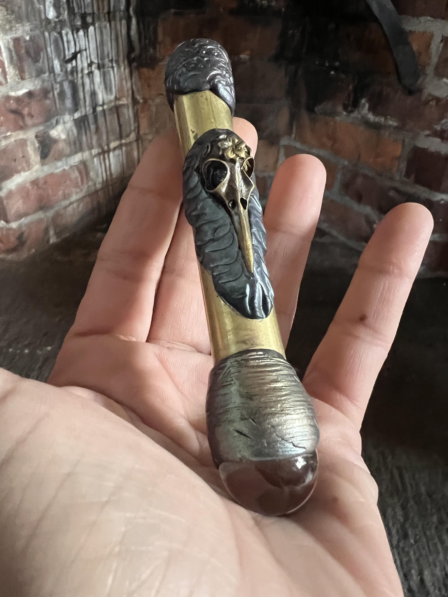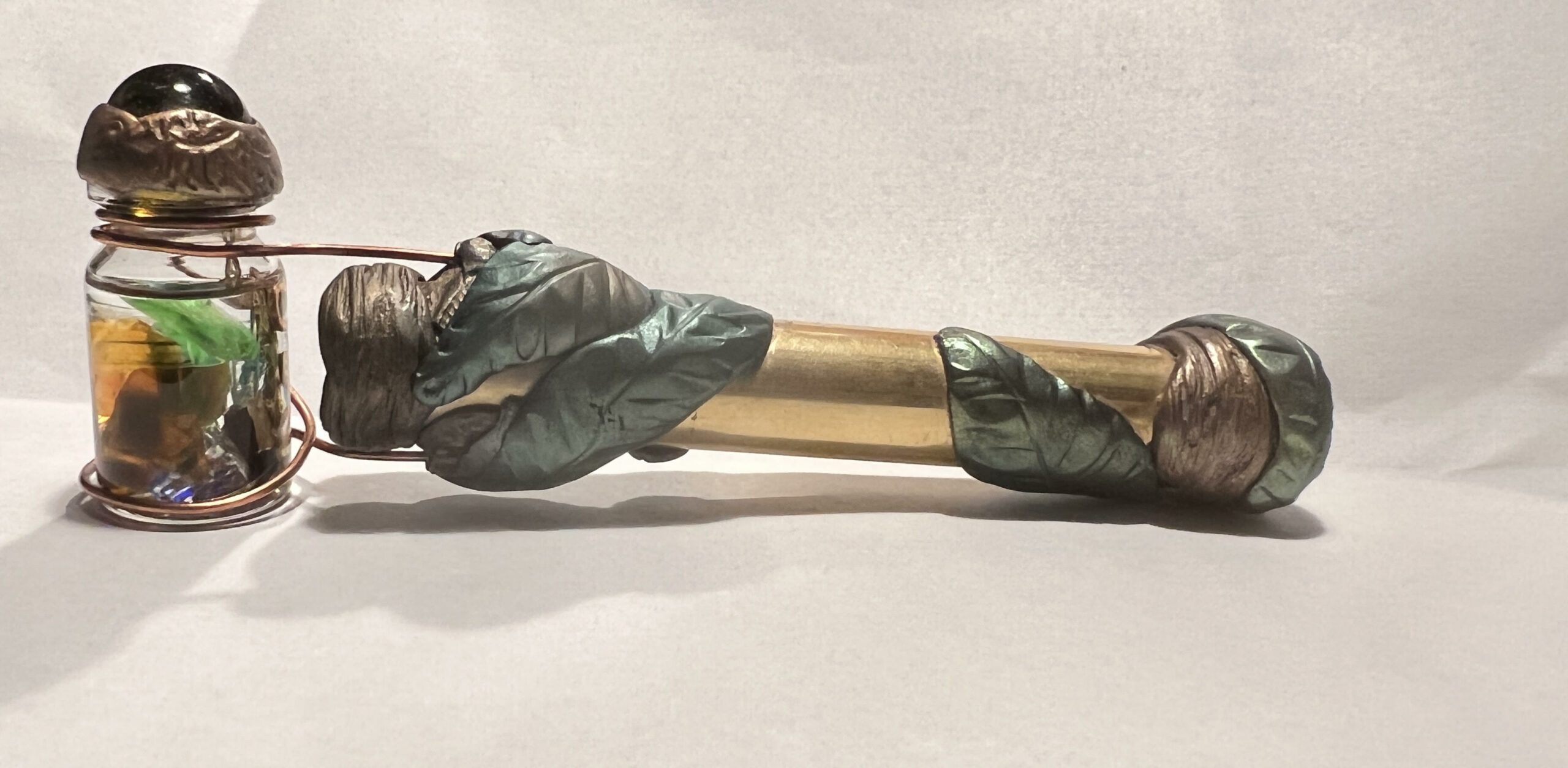 One issue I faced was wanting to attach things once the mirrors were inserted, which seemed impossible to do without getting flux inside of the scope or damaging the mirrors with the heat from the soldering iron. In the past, I had used polymer clay to make jewelry, but did not think it would be safe to put a kaleidoscope through the heating process. Most importantly, I didn’t know if that type of clay would last for years if it was stuck to smooth glass.
