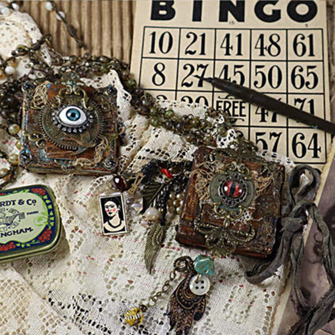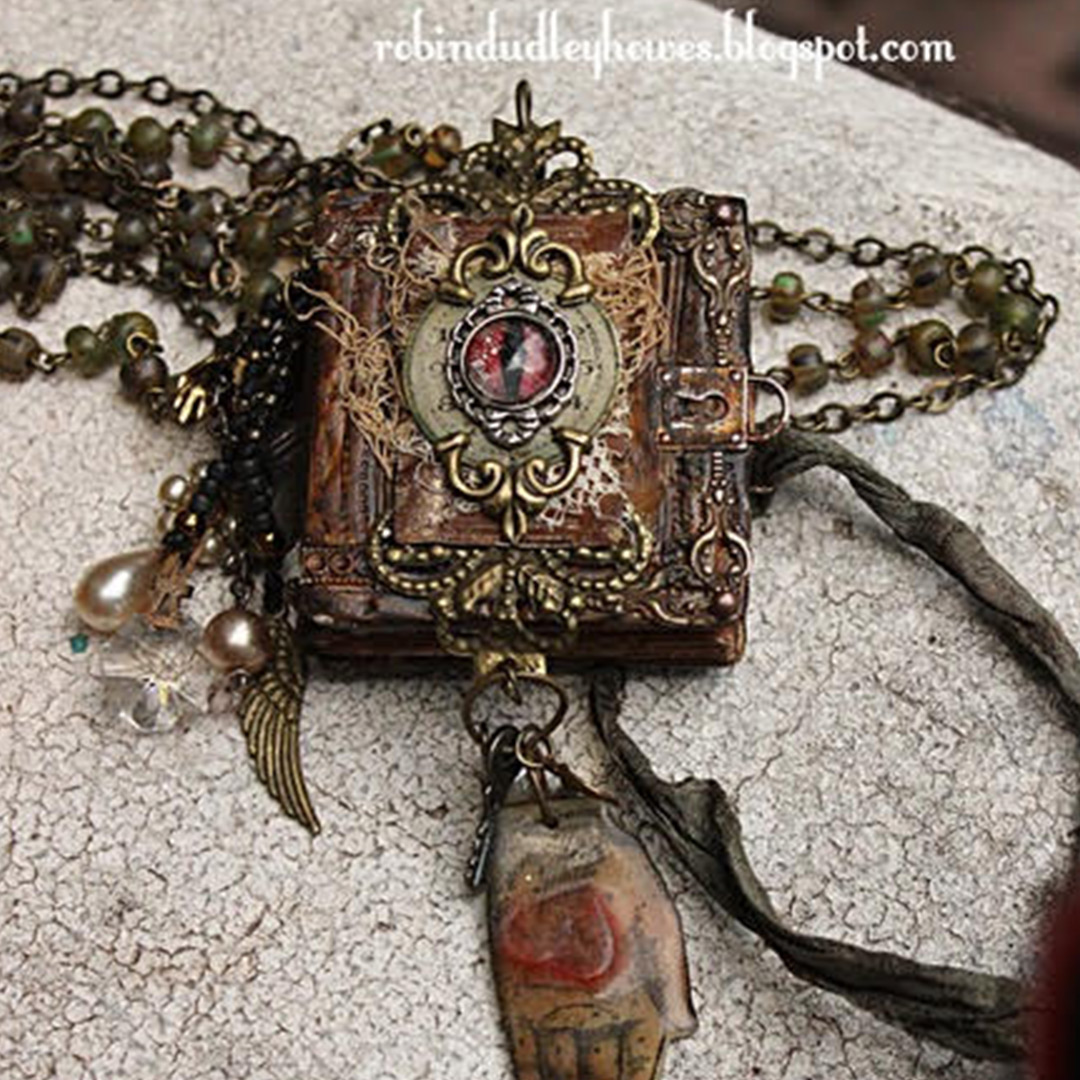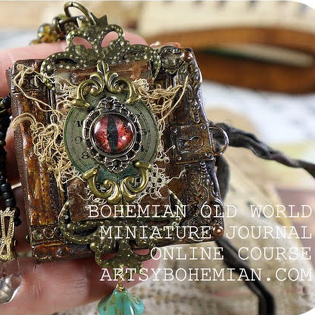 The book is only 2 x 1 3/4 inches with ½ inch spine. For more information on how to make your own Olde World mini journal necklace I invite you to check out my online school.
