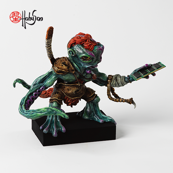 I really love the changing characteristics of Apoxie Sculpt over the curing process and beyond. It’s almost alive until it hardens and then changes to a sturdy base for further editing or buildup. As I was doing more and more work with it, I literally started planning my sessions around these different working phases. While the material is soft and moveable I am working on the big picture and in later stages I lay my focus on smaller details like surface structures, dents and wrinkles.